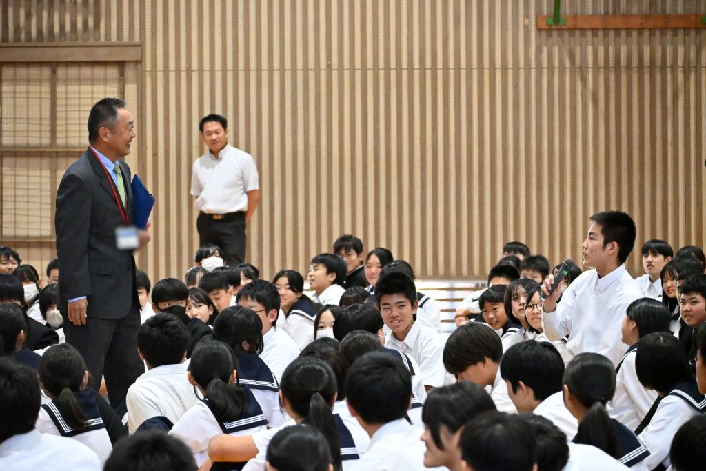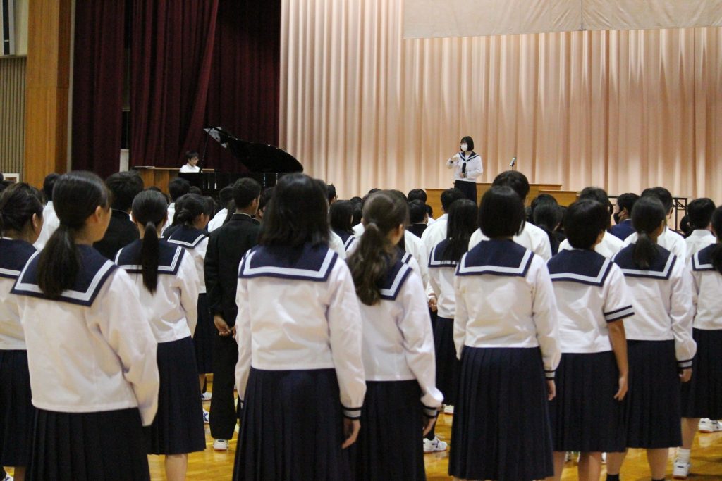 10月10日(金)に、前期終業式を実施しました。各学年の生徒代表は、前期の学校生活を振り返って、堂々と発表することができました。また、校長より「通知表は人と比べるのではなく、自己の成長を確かめるために活用してほしい」とのお話がありました。後期も生徒一人一人にとってすばらしい学校生活になるよう全職員で指導していきたいと思います。