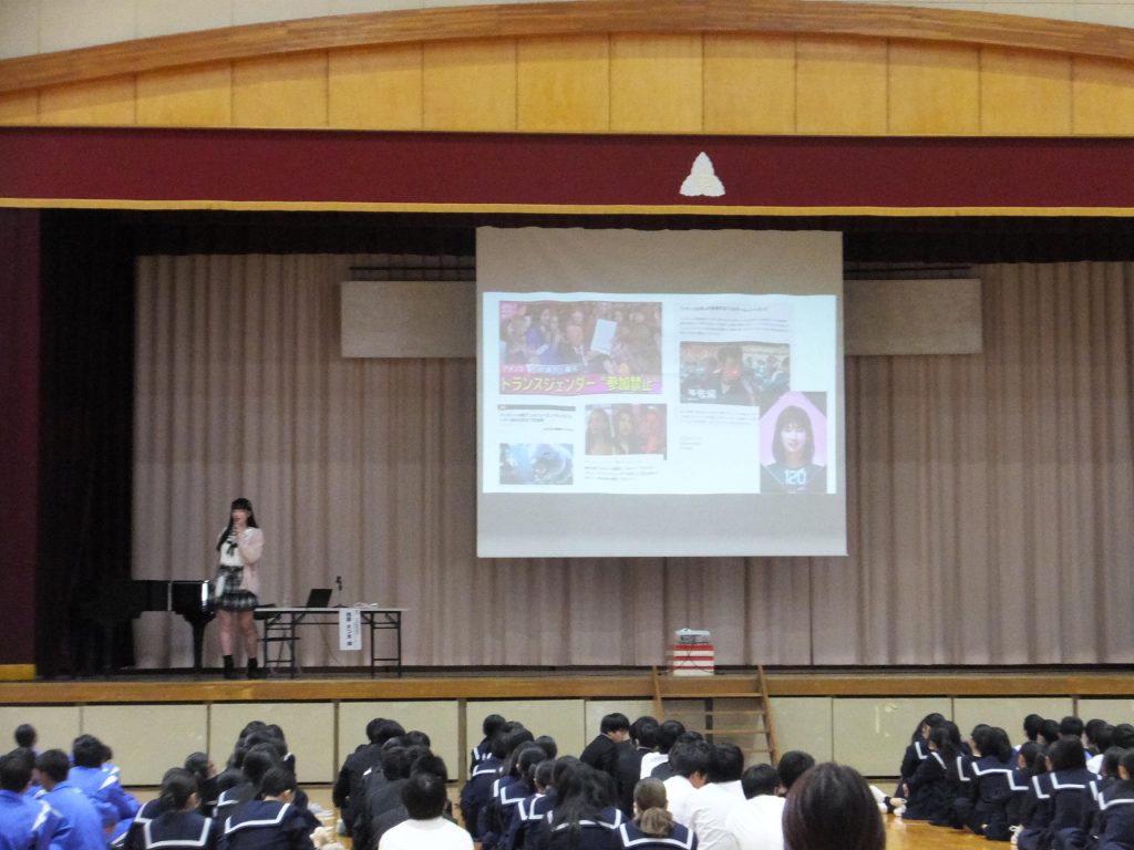 11月19日(水)に、生徒を対象に性的マイノリティ講演会を実施しました。「LGBTQ+」についての知識や現状について、実体験をもとにわかりやすくお話をいただきました。保護者の方にも参加していただき、「自分らしさ」とは何か、その本質に迫るすばらしい講演会となりました。ありがとうございました。