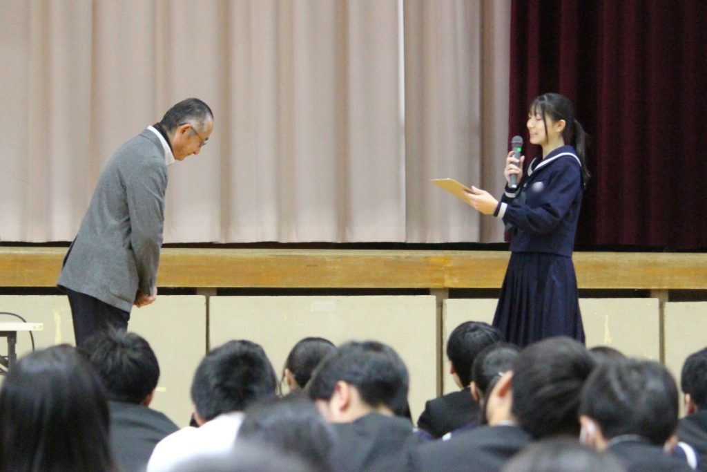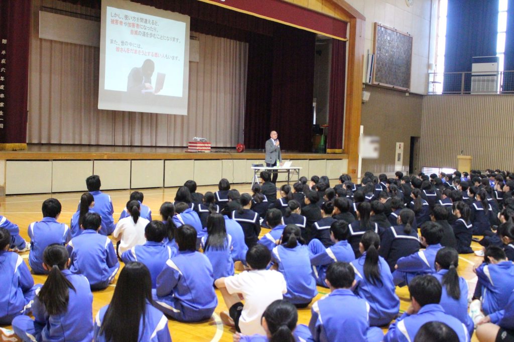 12月5日(金)に、全生徒および受講希望の保護者の方を対象として、メディア教育講演会を実施しました。マナーアップ委員会の生徒達が司会を担当し、本講演会を進行しました。講師として、茨城県メディア指導員連絡会より横島先生をお招きし、SNSの適切な使い方などのお話を頂きました。生徒達がトラブルに巻き込まれないように、インターネットやSNSの使い方についてご家庭でお話をする機会にして頂ければと思います。